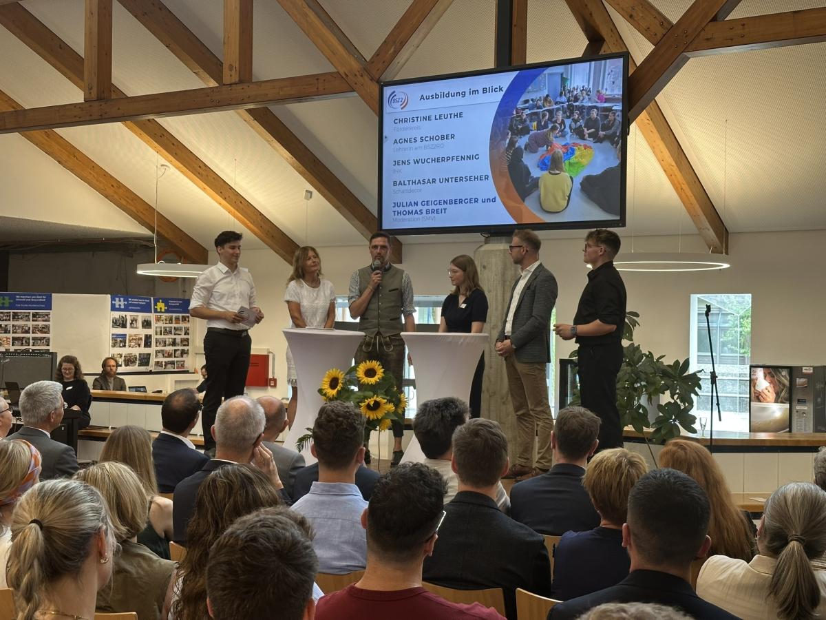 Drei Auszubildende gaben dem Fest eine persönliche Note. Anna-Lena Haydn, angehende Kinderpflegerin, sprach von ihrem Kindheitstraum, mit Kindern zu arbeiten. Julian Geigenberger, in Ausbildung zum Automobilkaufmann, betonte die Bedeutung von Interesse und Fachwissen: „Man muss nicht nur Autos mögen, sondern auch die Technik und die Zukunft der Antriebe verstehen.“ Thomas Breit, der sich nach ersten Erfahrungen in der Elektrotechnik für eine Ausbildung zum Steuerfachangestellten entschied, findet Freude an der Vielseitigkeit seines Berufs – und schätzt, dass das Wissen auch im privaten Alltag hilfreich ist.