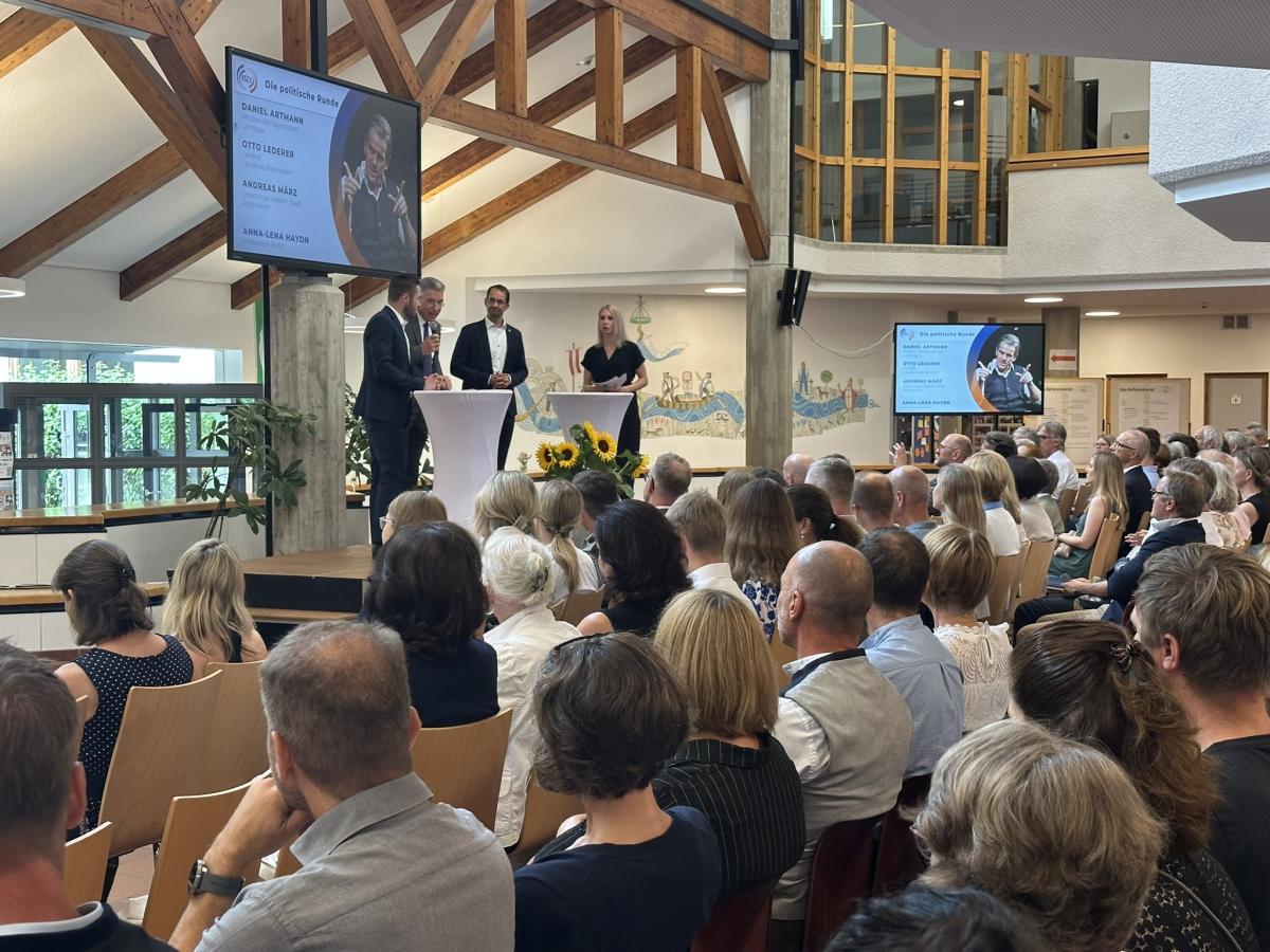 In einer lebendigen Podiumsdiskussion, moderiert von der Schülerin Anna-Lena Haydn, diskutierten Oberbürgermeister Andreas März, Landtagsabgeordneter Daniel Artmann und Landrat Otto Lederer über die Zukunft des Bildungssystems. März sprach sich für ein inklusives Bildungssystem aus: „Nicht jeder muss Abitur machen – aber jeder verdient eine gute Ausbildung.“ Artmann hob die Bedeutung der beruflichen Bildung für den technologischen Fortschritt hervor, der in den Betrieben stattfinde. Lederer betonte, wie wichtig es sei, Fachkräfte durch attraktive Bildungsangebote in der Region zu halten. Ein humorvoller Moment entstand, als Haydn fragte, wer in der Schulzeit einen Verweis erhalten habe – und alle drei Politiker die Hand hoben.